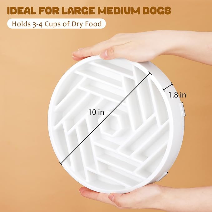 WHIPPY Slow Feeder Dog Bowl, Puzzle Maze Design to Slow Down Eating, 3-Cup Capacity, Anti-Gulping Food Bowl for Medium & Large Dogs,White -