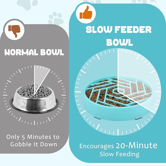 TOBYTO Slow Feeder Dog Bowls for Large Medium Breed, Anti-Choking Pet Slow Feeding Food Bowl, Non Slip Maze Puzzle Dog Feeder Bowl Prevent Bloating,Blue -