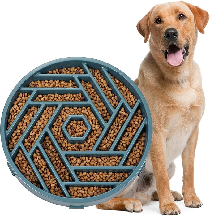 WHIPPY Slow Feeder Dog Bowl, Puzzle Maze Design to Slow Down Eating, 3-Cup Capacity, Anti-Gulping Food Bowl for Medium & Large Dogs,Blue -