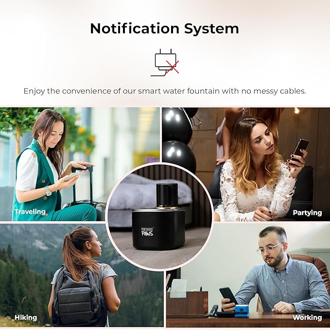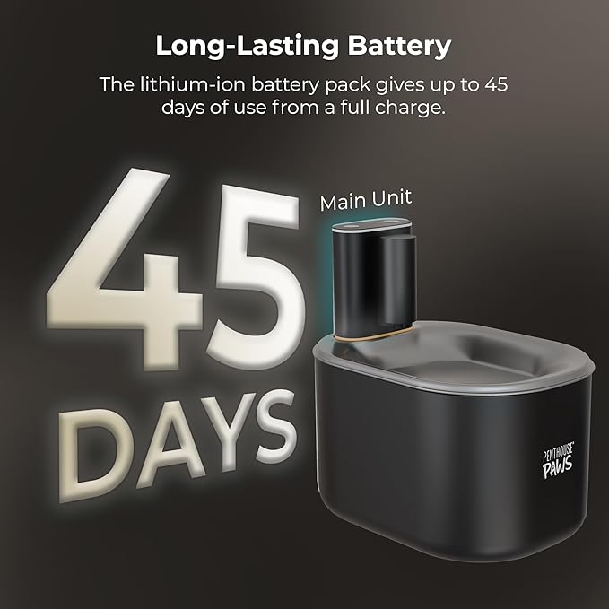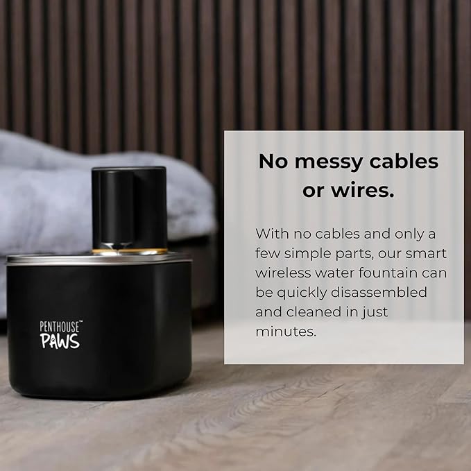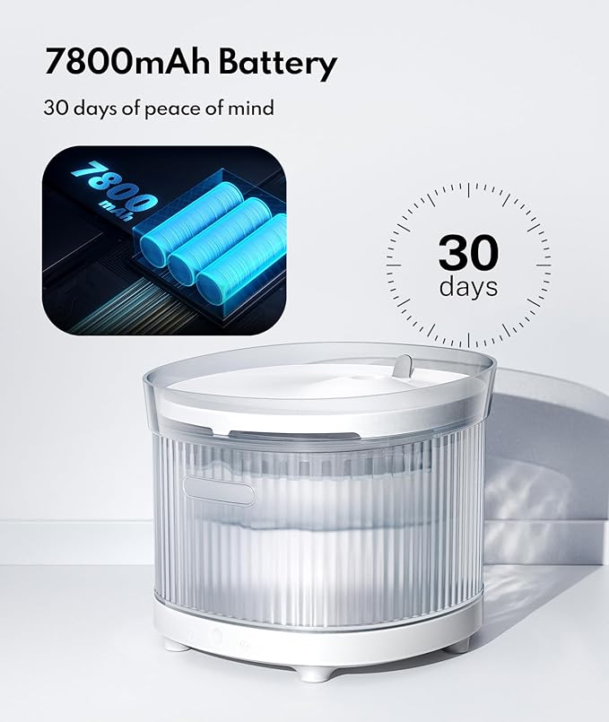 Homerunpet Cordless Cat Water Fountain, 7800mAh Battery, 30-Day Runtime, Easy-Clean Detachable Design, Transparent Tank, Motion Sensor, Black -
