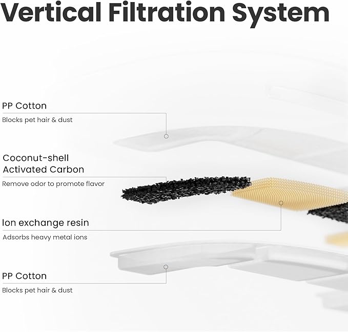 Automatic Cat Water Fountain 61oz/1.8L, Ultra Quiet Pump, BPA-Free & Detachable for Easy Cleaning, Includes 3 Replacement Filters (White, ABS) -