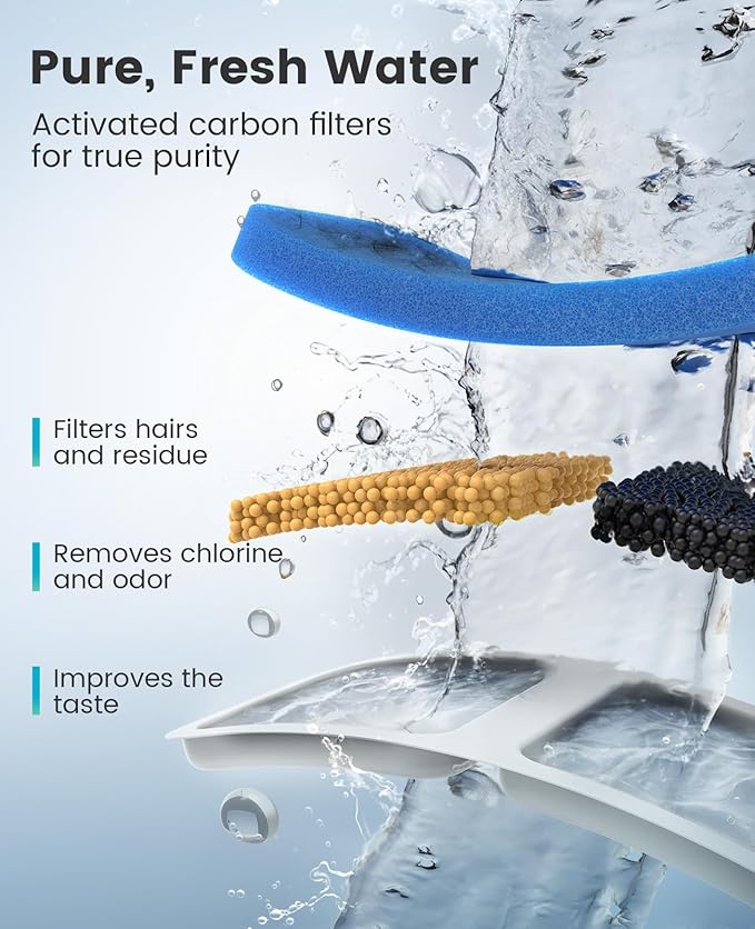 Cat Water Fountain - BOODIDI Ultra Silent Pet Drinking Fountain for Cats and Small Dogs, Indoor Water Fountain, 2.4L/2.5QT Capacity, with Replacement Filters (Blue) -
