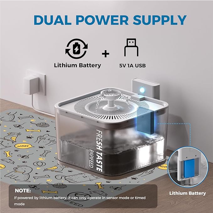 PAPIFEED Wireless Cat Water Fountain, 106oz/3L Battery Operated Pet Water Fountain Cordless for Cats Indoor, Automatic Cat Drinking Dispenser with Motion Sensor, Leak-Proof Silicone Pad Included White -