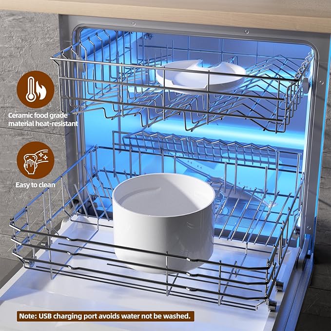 Ceramic Cat Water Fountain,Cat Water Fountain Cordless Automatic with Ultra-Quiet Pump for Cats, Dogs, Multiple Pets