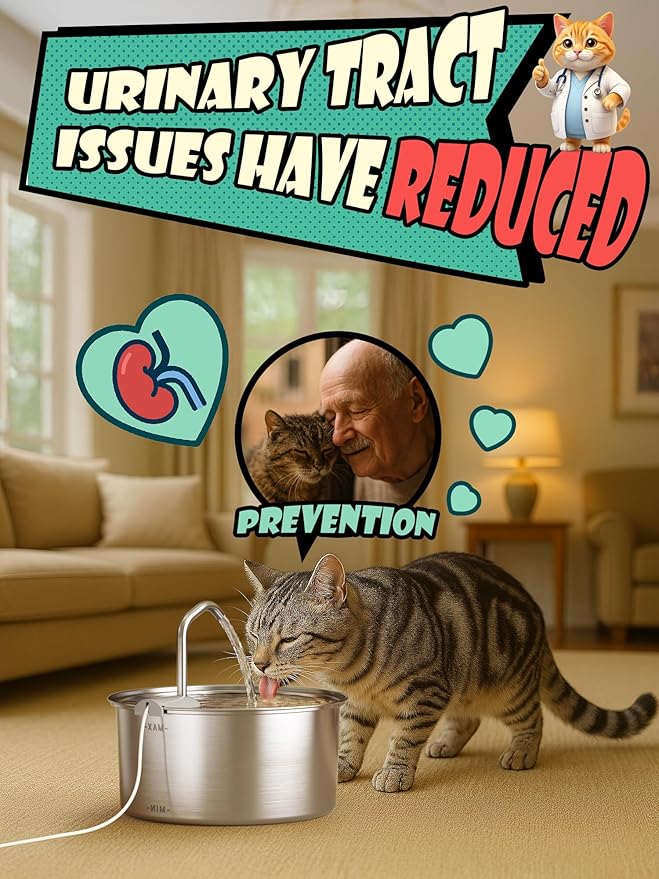 Cat Water Fountain, Pet Water Fountain for Cats/Dogs Indoor, Stainless Steel Cat Drinking Fountains with Water Level Window and 6 Filters + 6 Sponges(3.2L/108oz) -