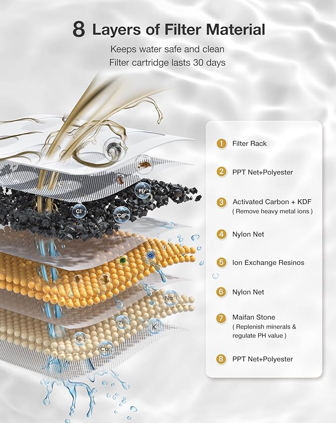 Cat Water Fountain for Drinking, 8-Layer cat Fountain Filter, Ultra-Quiet Pet Fountain for Dogs and Cats 2.4G WiFi(PF1L Marble) -