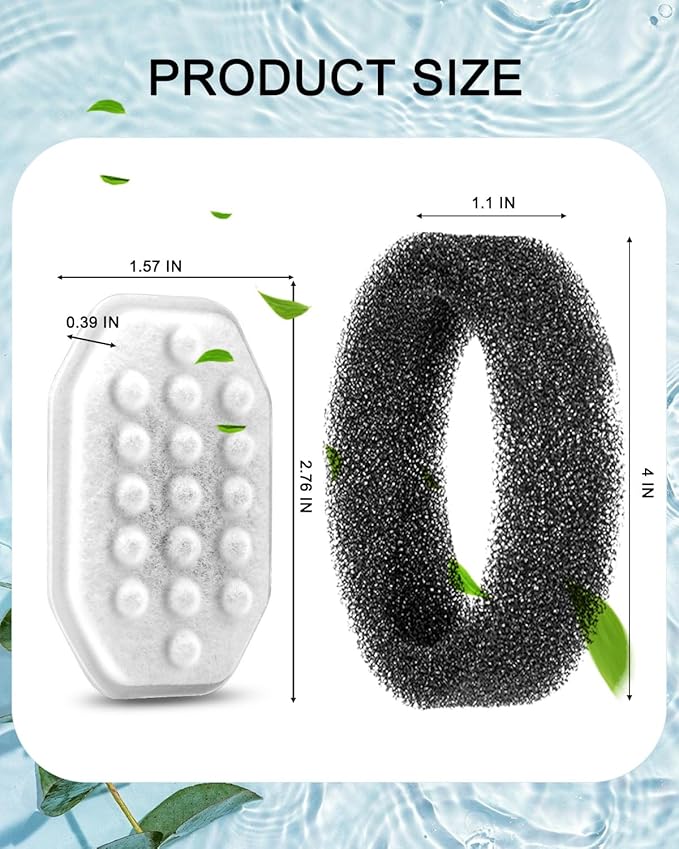 8 Pack Cat Water Fountain Filters with 8 Pack Pre-Filter Sponges Set for 3.2L/108oz Pet Cat Water Fountain, Pet Fountain Filter Replacement -