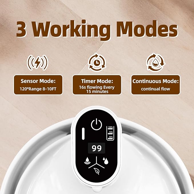 uahpet Cat Water Fountain, Wireless & Battery Operated 2L/67oz Pumpless Automatic Pet Fountain with Motion Sensor, Food-Grade ABS Tray, Easy to Clean Water Dispenser for Cats