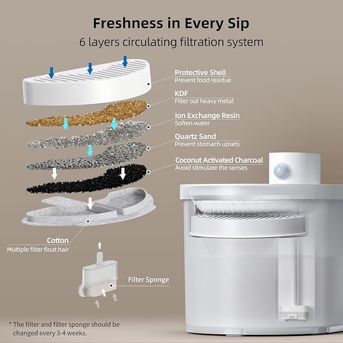 Cheerble Replacement Filters for Cheerble E1 Lite, Pumpless Cat Water Fountain, Four to Six Months Set of Replacement Filters for Ultra Quiet Pet Water Fountain, White, 8 Count (Pack of 1) -