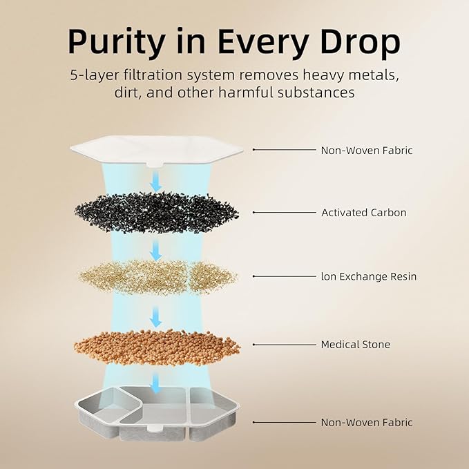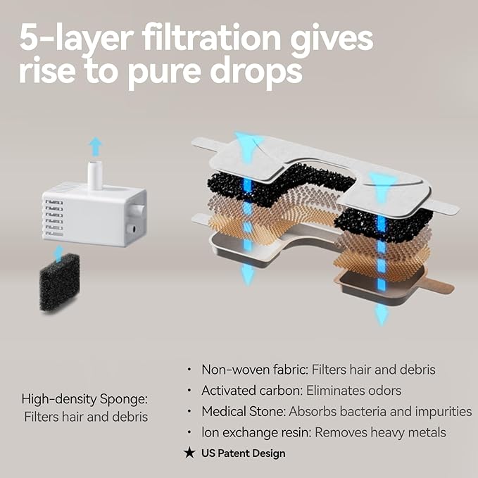 (4 Pack) Dog Water Fountain Filters Replacement, Compatible with SwSun 7.5L/254oz, 5-Layer Filtration, Easy Replacement, Replace Every 2-4 Weeks -