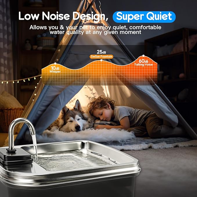 lesotc Dog Water Fountain Stainless Steel, 2.6 Gallon/10L Pet Water Fountain Cat Water Fountain Dog Water Bowl Dispenser for Large Dogs & Multi Pets, Ultra-Quiet, Smart Pump, Easy to Clean -