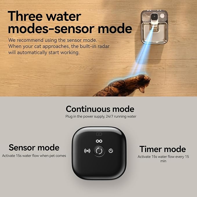 Cat Water Fountain Wireless: Battery Operated Stainless Steel 108oz/3.2L Cat Fountain, Automatic Cordless Pet Water Fountains with Motion Sensor Indoor, Easy Clean, for Cats, Dogs, Multiple Pets -