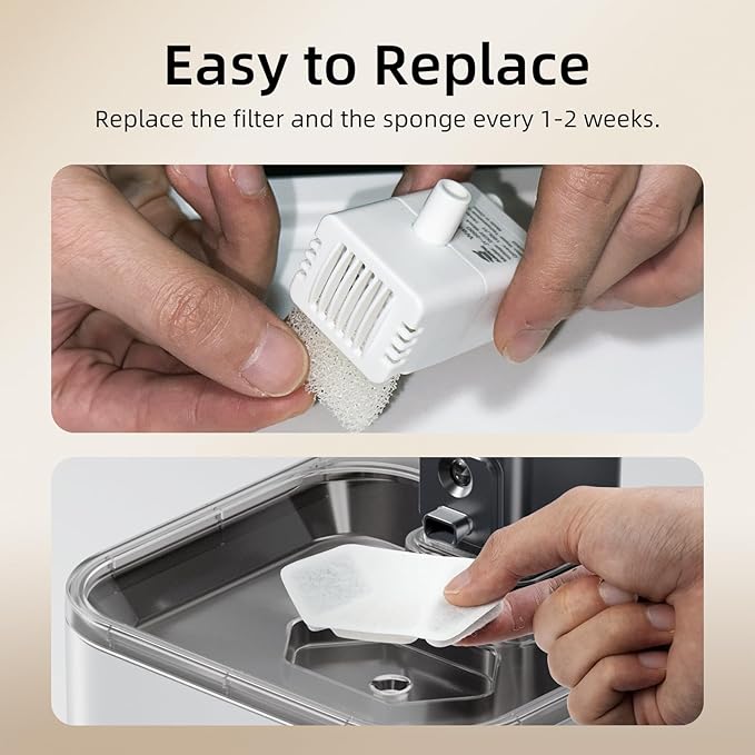8 Pack Replacement Filters & 8 Pack Pre-Filter Sponges Set for 3.2L/108oz Pet Cat Water Fountain, Pet Fountain Filter Replacement (16 Filters & 16 Sponges) -