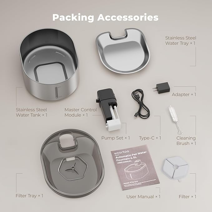 Wireless Cat Water Fountain Stainless Steel, 152oz/4.5L Cat Fountain Battery Operated, Cordless Pet Water Fountain for Cats & Dogs with Motion Sensor, Ultra Quiet Pump, Multi-Filtration -