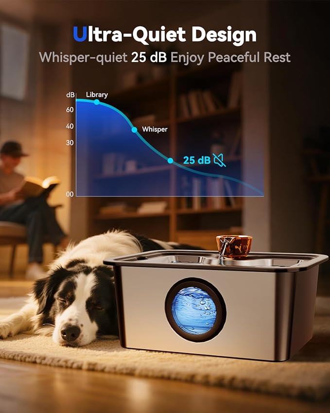 Dog Water Fountain for Large Dogs Stainless Steel, 3Gal Extra Large Dog Water Bowl Dispenser with 2 Filters & Visual Window, Automatic Filtered Pet Fountain Indoor, Quiet Safe Pump with LED Indicator -
