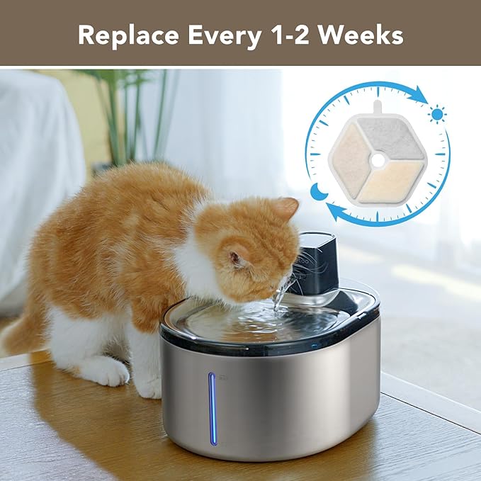 3 Packs Official Replacement Filters and 3 Packs Sponges for 152oz/4.5L Wireless Cat Water Fountain PTM-643 -