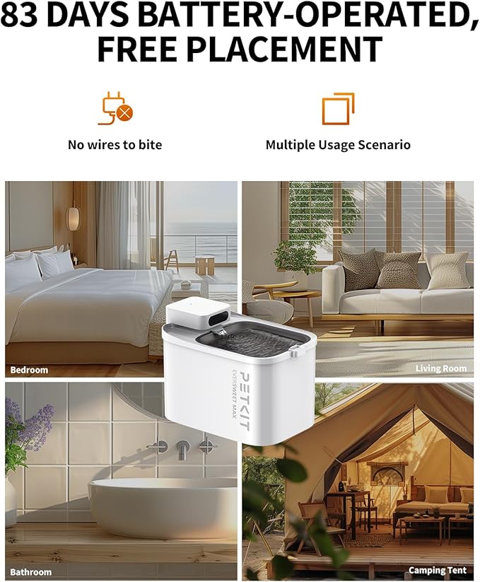 PETKIT EVERSWEET MAX Cordless Cat Water Fountain & Automatic Pet Feeder, 105 fl oz/3L Pet Water Fountain for Cats Dogs Inside, 2.4G WiFi Cat Dog Feeder -