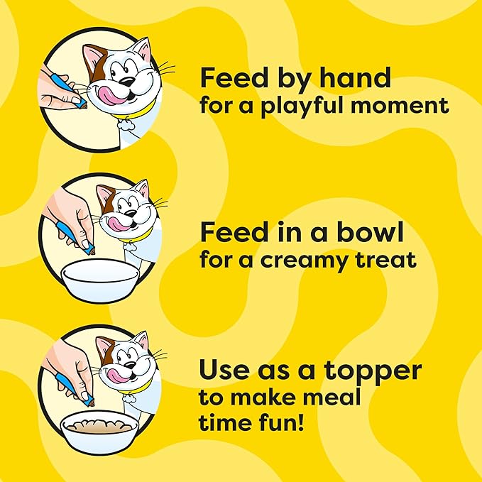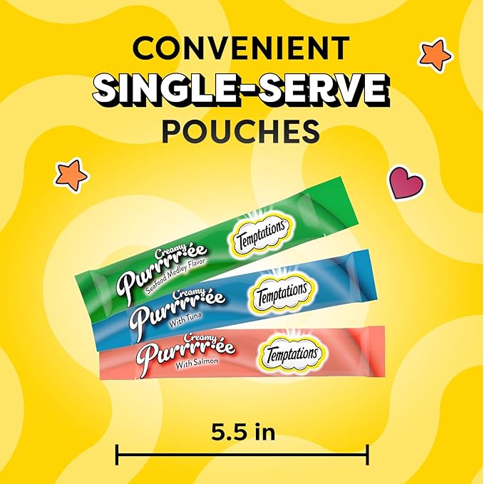 Temptations Creamy Puree Mix-Ups Squeezable Lickable Wet Cat Treats, Tuna Flavor, Salmon Flavor, and Seafood Medley Flavor, 0.42 oz. Tubes, 48 Count Temptations Creamy Puree Mix-Ups Squeezable Lickable Wet Cat Treats, Tuna Flavor, Salmon Flavor, and Seafood Medley Flavor, 0.42 oz. Tubes, 48 Count