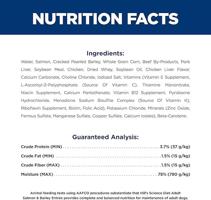 Hill's Science Diet Adult 1-6, Adult 1-6 Premium Nutrition, Wet Dog Food, Salmon & Barley Loaf, 13 oz Can, Case of 12 Hill's Science Diet Adult 1-6, Adult 1-6 Premium Nutrition, Wet Dog Food, Salmon & Barley Loaf, 13 oz Can, Case of 12