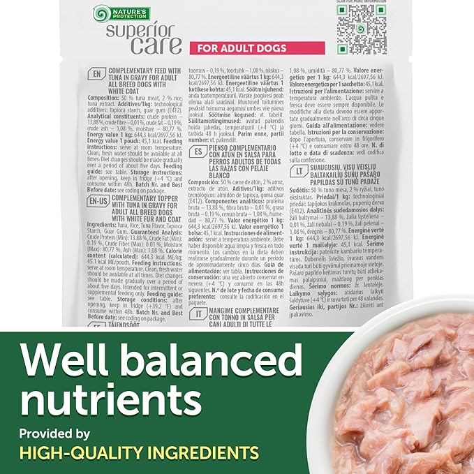 Nature's Protection Wet Dog Food Pouches for Small & Large Breed - High Protein, 24-Pack Soft Dog Food Toppers for Adult Light Coated Dogs (Superior Care - Tuna Fish, 2.46-oz) Nature's Protection Wet Dog Food Pouches for Small & Large Breed - High Protein, 24-Pack Soft Dog Food Toppers for Adult Light Coated Dogs (Superior Care - Tuna Fish, 2.46-oz)