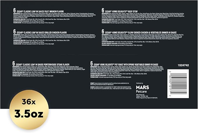 Cesar Wet Dog Food Home Delights & Classic Loaf in Sauce, Variety Pack, 3.5 oz. (36 Count, Pack of 1) Cesar Wet Dog Food Home Delights & Classic Loaf in Sauce, Variety Pack, 3.5 oz. (36 Count, Pack of 1)