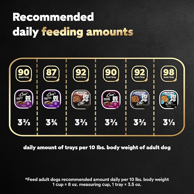 Cesar Wet Dog Food Steak Lovers Variety Pack with Real Meat, 3.5 oz. Trays (24 Count, Pack of 1) Cesar Wet Dog Food Steak Lovers Variety Pack with Real Meat, 3.5 oz. Trays (24 Count, Pack of 1)