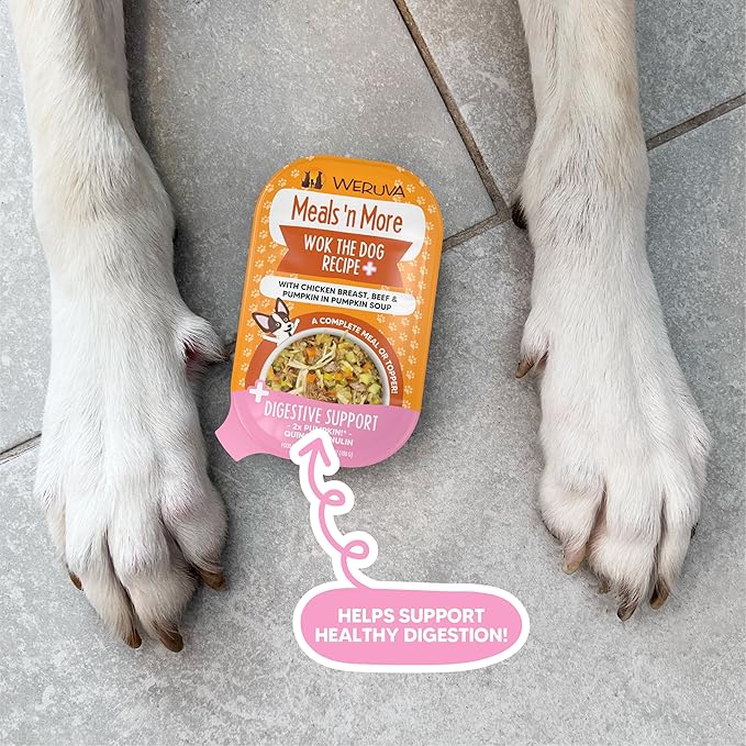 Weruva Meals 'n More Natural Wet Dog Food, Wok The Dog Plus Digestive Support, 3.5oz Cup (Pack of 12) Weruva Meals 'n More Natural Wet Dog Food, Wok The Dog Plus Digestive Support, 3.5oz Cup (Pack of 12)