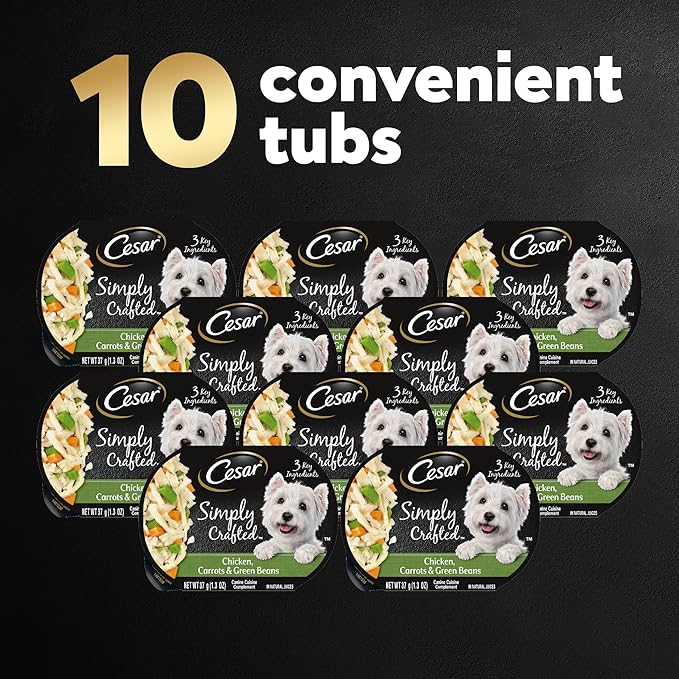 Cesar Simply Crafted Adult Wet Dog Food Meal Topper, Chicken, Carrots & Green Beans, 1.3oz. (10 Count, Pack of 1) Cesar Simply Crafted Adult Wet Dog Food Meal Topper, Chicken, Carrots & Green Beans, 1.3oz. (10 Count, Pack of 1)