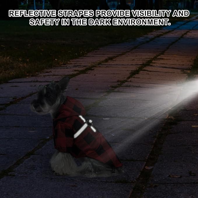 BEAUTYZOO Hooded Dog Raincoat with Built-in Harness, Jacket Poncho, Waterproof Winter Coat - Buffalo Red, XS -